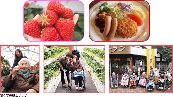 狭山ベリーランドでは、イチゴ狩りに挑戦!ビニールハウス内は、真っ赤なイチゴが鈴なりになっており、次々と摘んで、瑞々しく甘いイチゴの味を楽しんでいました。