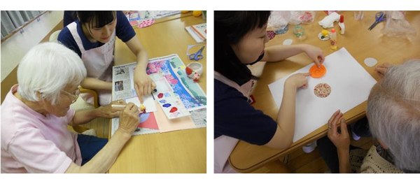 むさしの園では、地域の学校や保育園との世代間交流の際に何か貢献できないか?との思いから創作活動の中でフエルトを利用した人形づくり等に挑戦しています。その方の出来ることを役割とすることで何かの役に立っているという喜びを実感していただいています。この交流が子供達にとっても社会性を育む場となっています。これからもずっと続いて行きますように☆