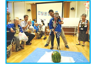 デイサービスでは、毎月、様々なボランティアの皆様が来園され、ご利用者に潤いの時間を提供しております。