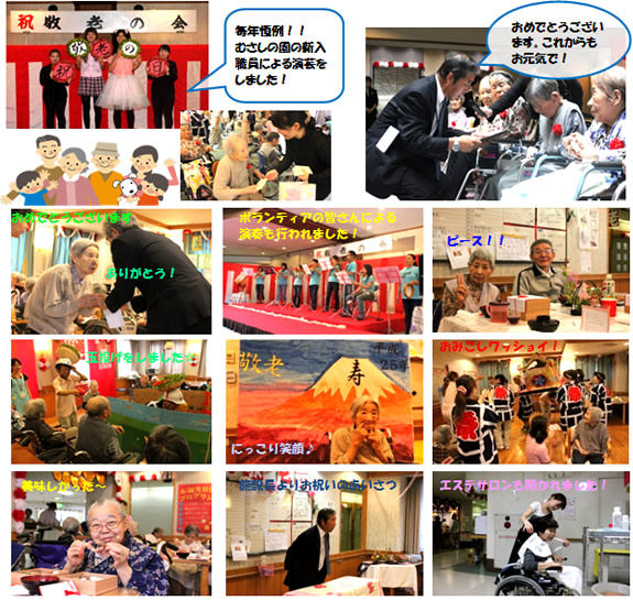涼しい風が吹き始めた 9月16、17日の両日、ご長寿をお祝いするデイサービス『敬老の会』が執り行われました。