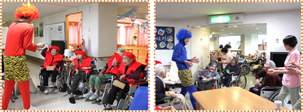 敬老の日であるこの日に、当園でもご入居者の皆様への敬意を込めて、敬老の会を行いました。午前は園全体でのお祝いを、午後はブロック毎に趣向を凝らしたレクリエーションで皆様に楽しんでいただきました。
